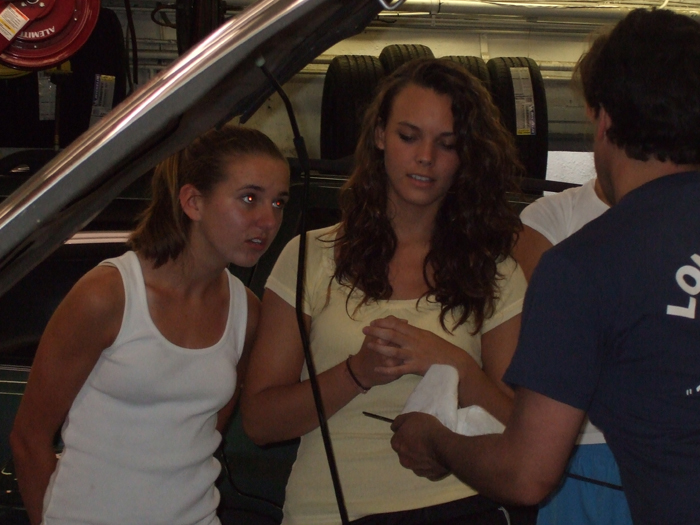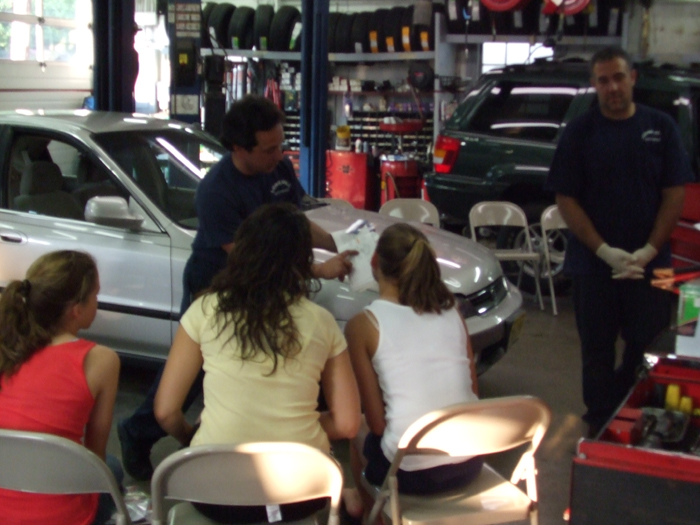 -Let the girls see how to check fluids (Oil, Transmission Fluid,