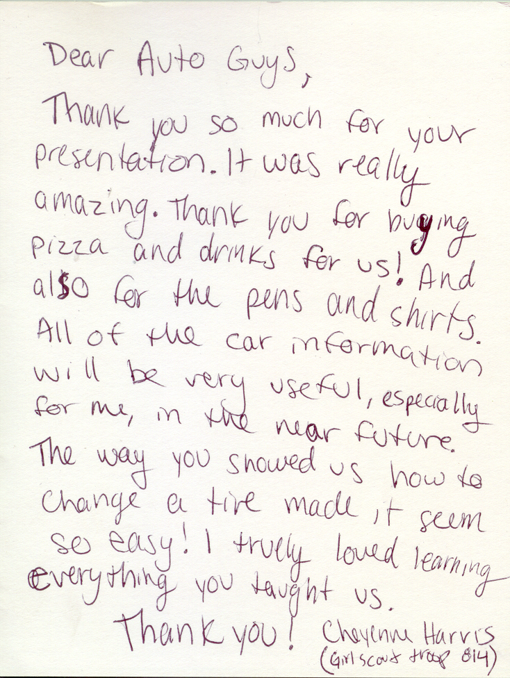 -Let the girls see how (or help, if possible) to change the oil